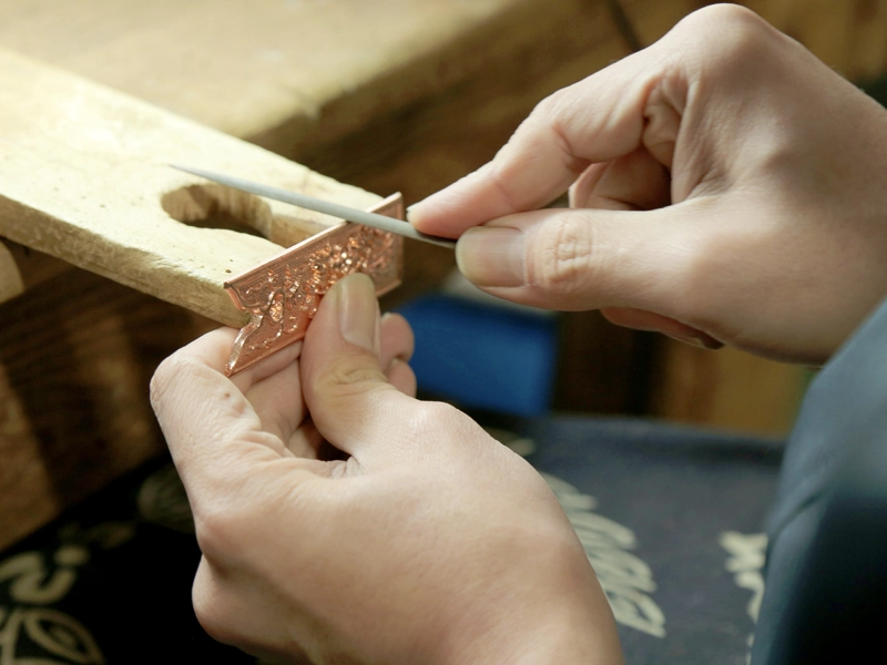 私たちの電鋳製品は、自社の熟練職人が製作した原型を使用しています。伝統工芸の真髄を知り尽くした職人が型を作るからこそ、電気的処理を経てもなお、工芸品としての品格と温かみを失わない製品が完成するのです。