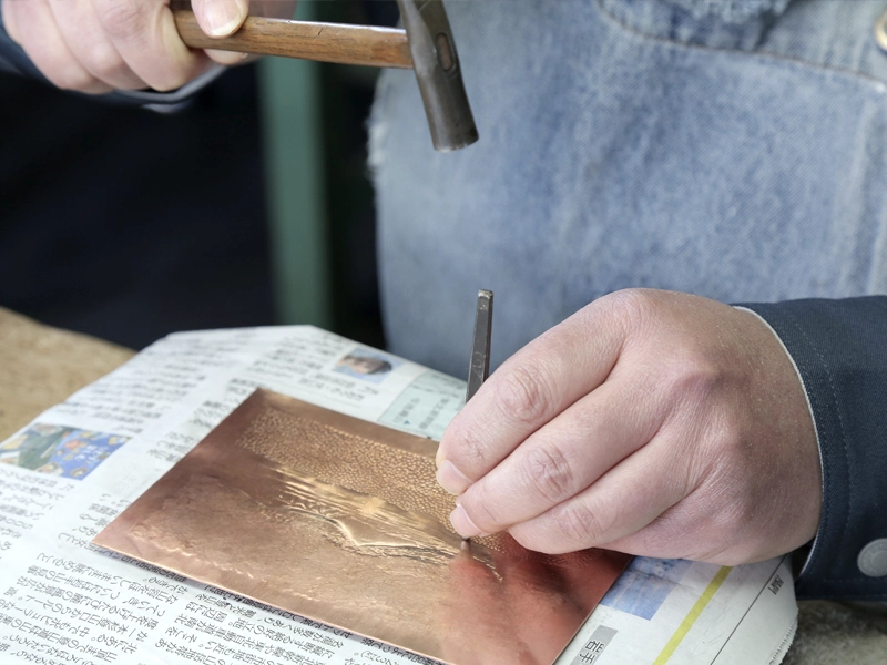 私たちは職人としての誇りを胸に、古くから伝わる技法を大切に守りながら、今の暮らしやニーズに即した新しい技法や発想を積極的に取り入れています。仏壇の飾りから金属工芸品まで。木原製作所の彫金・鍛金は、これからもお客様の期待に応え、日本のモノづくりの美学を次世代へと繋いでまいります。