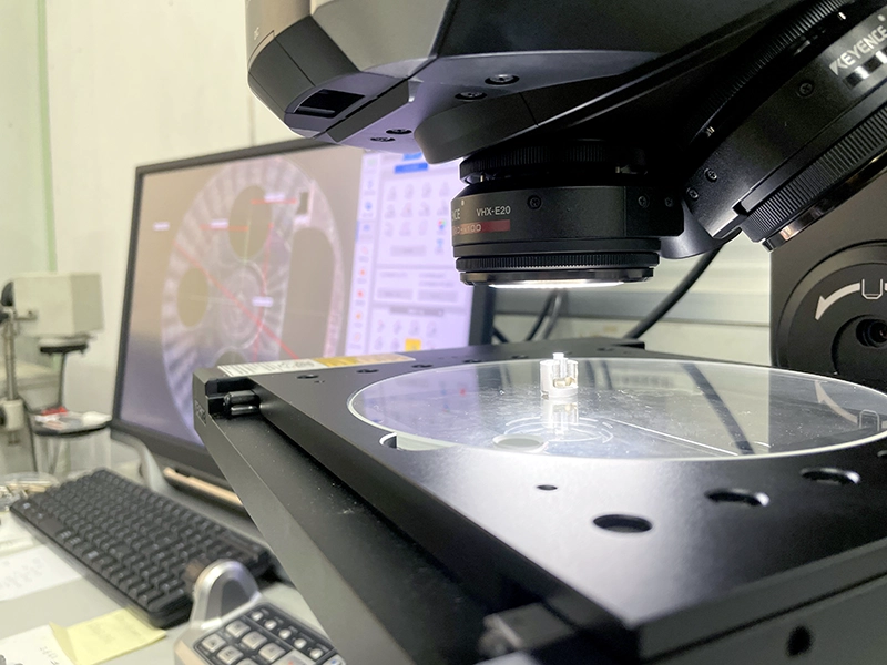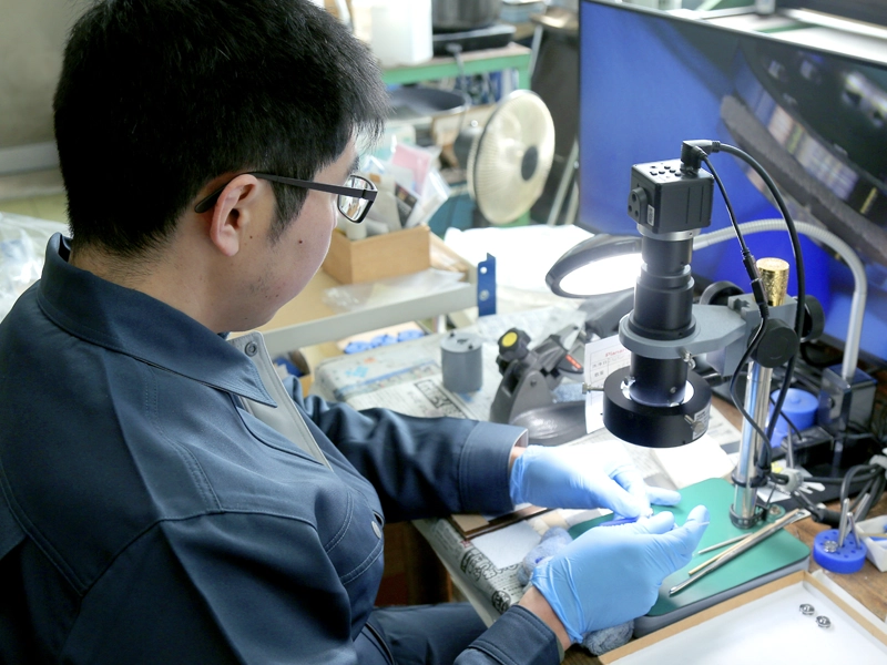 詳細な検品:マイクロスコープを用いた表面形状のチェックや、デジタルマイクロ顕微鏡による寸法測定などを行い、仕様に忠実なの製品製造に努めています。